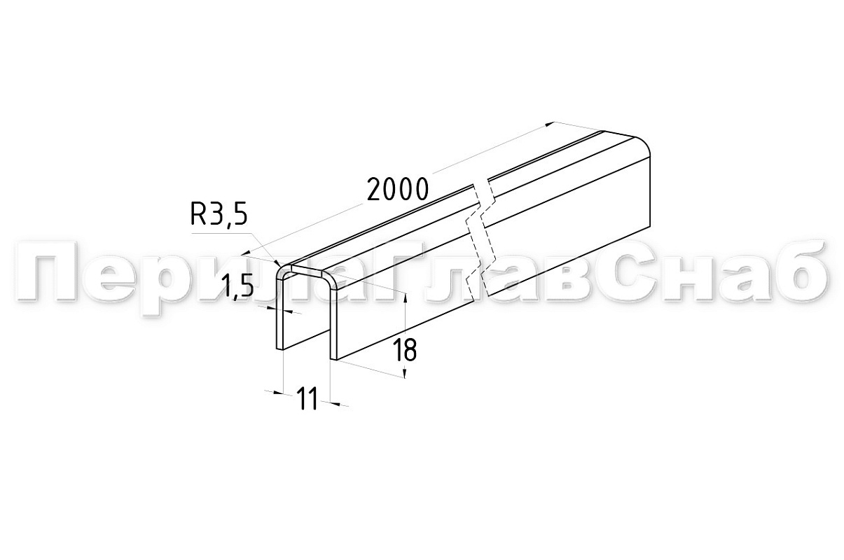 Профиль П-образный t=1,5 мм под стекло 20 мм, шлифованный, длина 2000 мм AISI 304 Ф-1148 купить в Воронеже