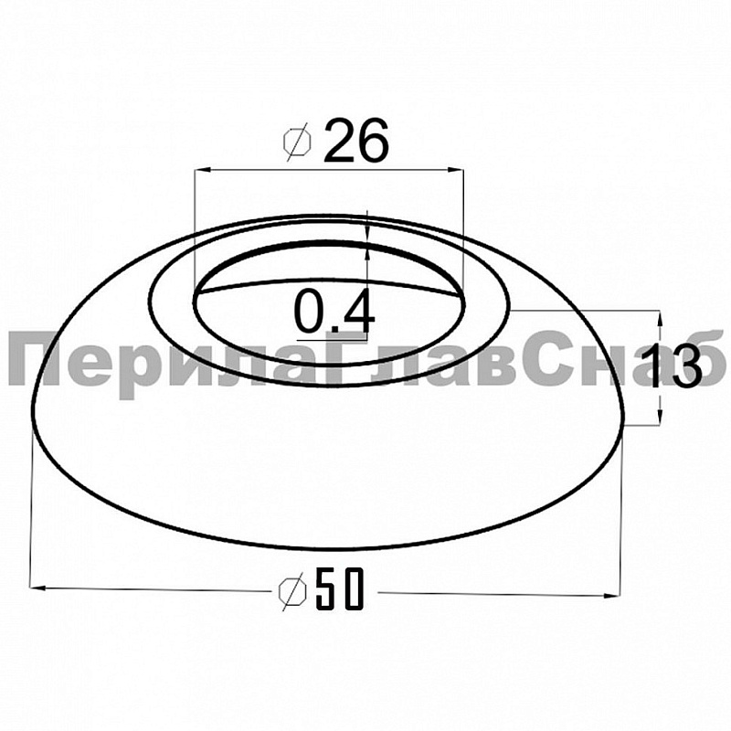 Низ стойки малый Ø25.4 мм, 50x13 мм, S=0.4 мм