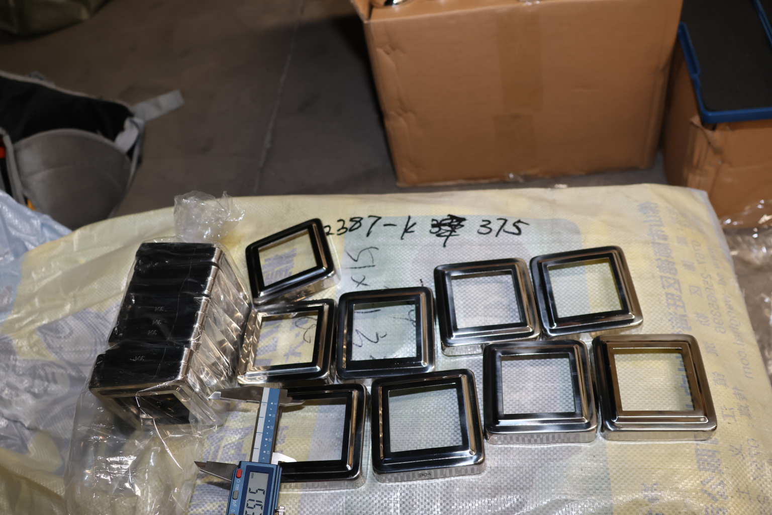 Низ стойки фигурный под трубу 50х50 мм, 83х83х0.5 мм, высота 17 мм, полированный (AISI 304) k375