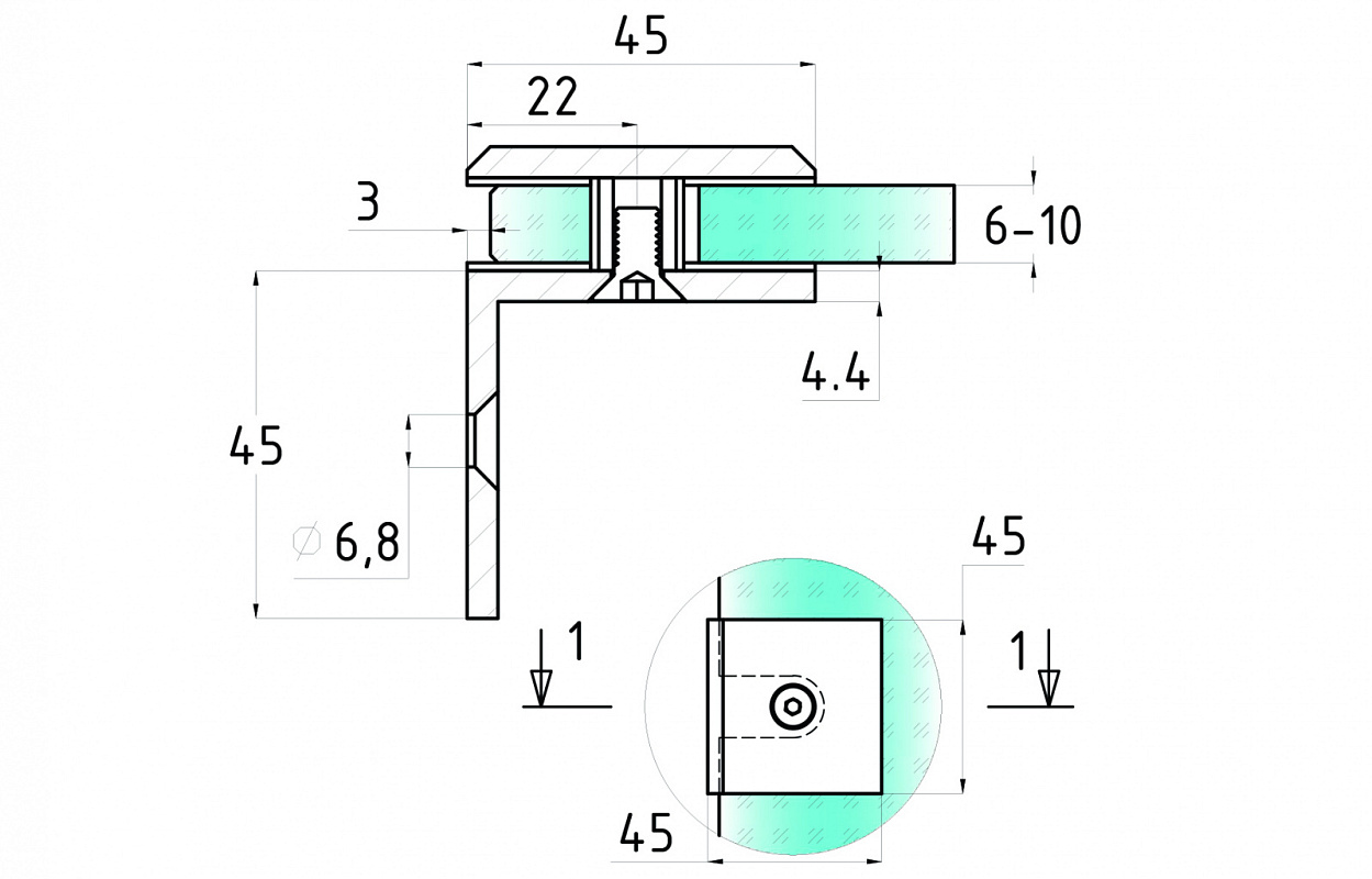 Коннектор для душевой кабины стена-стекло 90°, 45х45, цинк, черный, вырез 69 t732 BZn