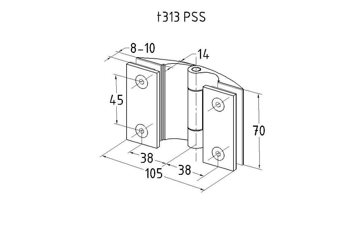 Петля для душевой кабины стена-стекло, AISI 304 t323 PSS