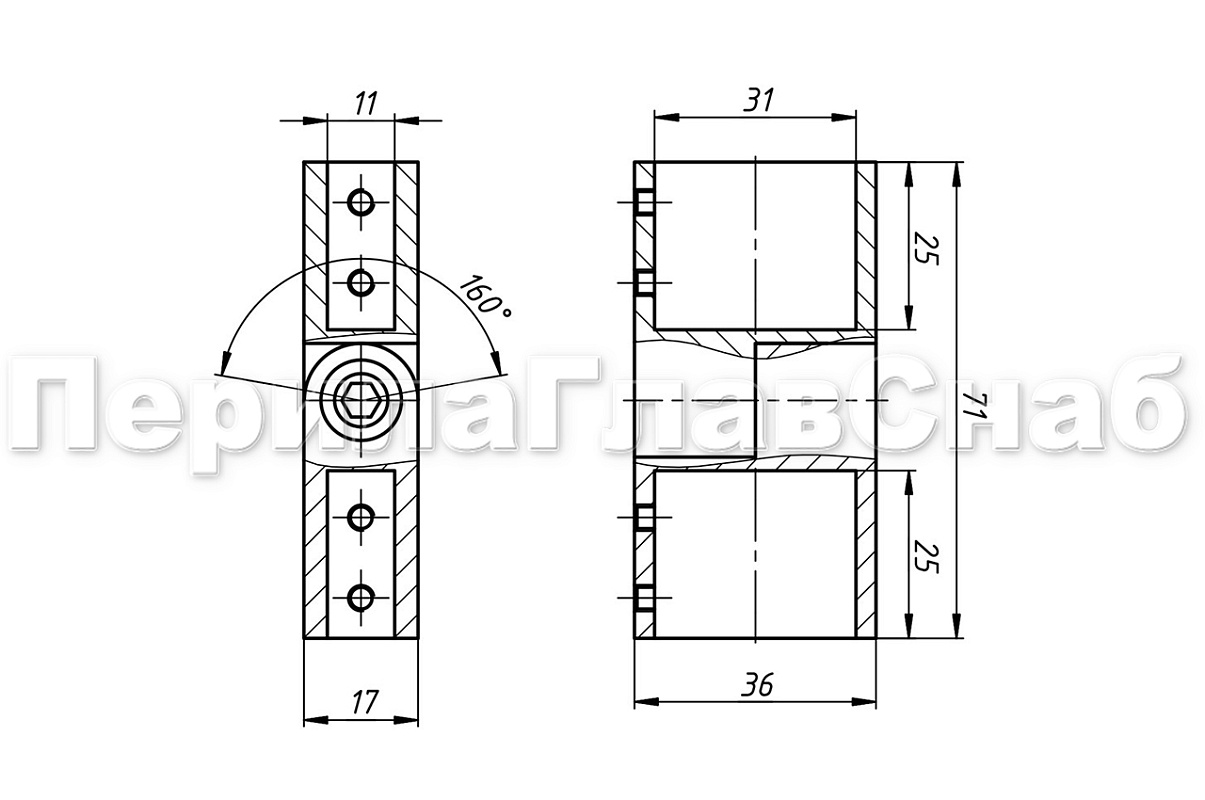 Коннектор для трека 30х10 мм регулируемый, шлифованный. Марка стали - AISI 304