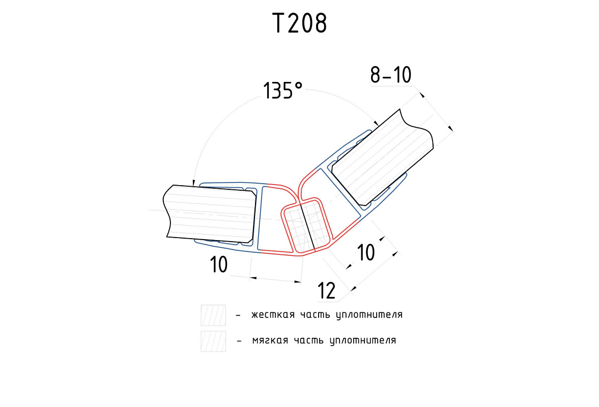 Комплект уплотнителей для стекла 8мм (2 шт.), стекло-стекло, с магнитом 135°, 2,2 м.черный прозрачный t208 BL