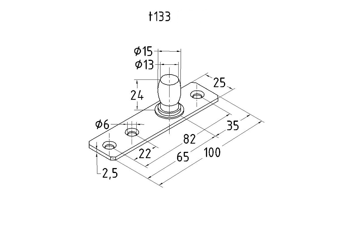 Ось верхняя, шлифованная, марка стали AISI 304. Представляет собой верхнюю ось для стеклянной маятниковой двери без фрамуги.