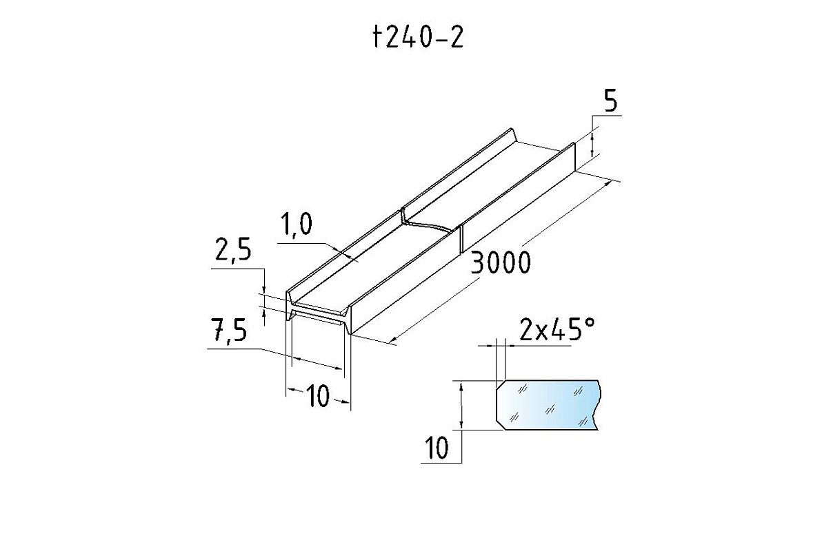 Профиль самоклеящийся для стекла 10 мм, длина 3000 мм t240-2