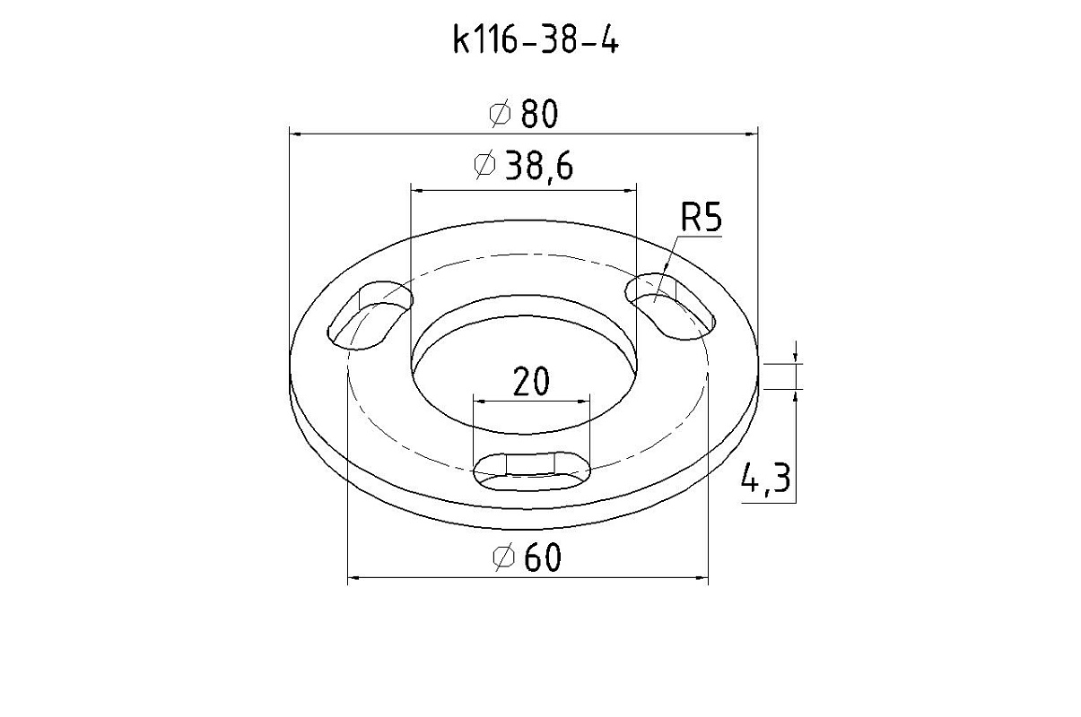 Фланец стойки 38/80 х 5 (4,3) х AISI 304 #200 3 отв х М10 х 20 k116-38-4