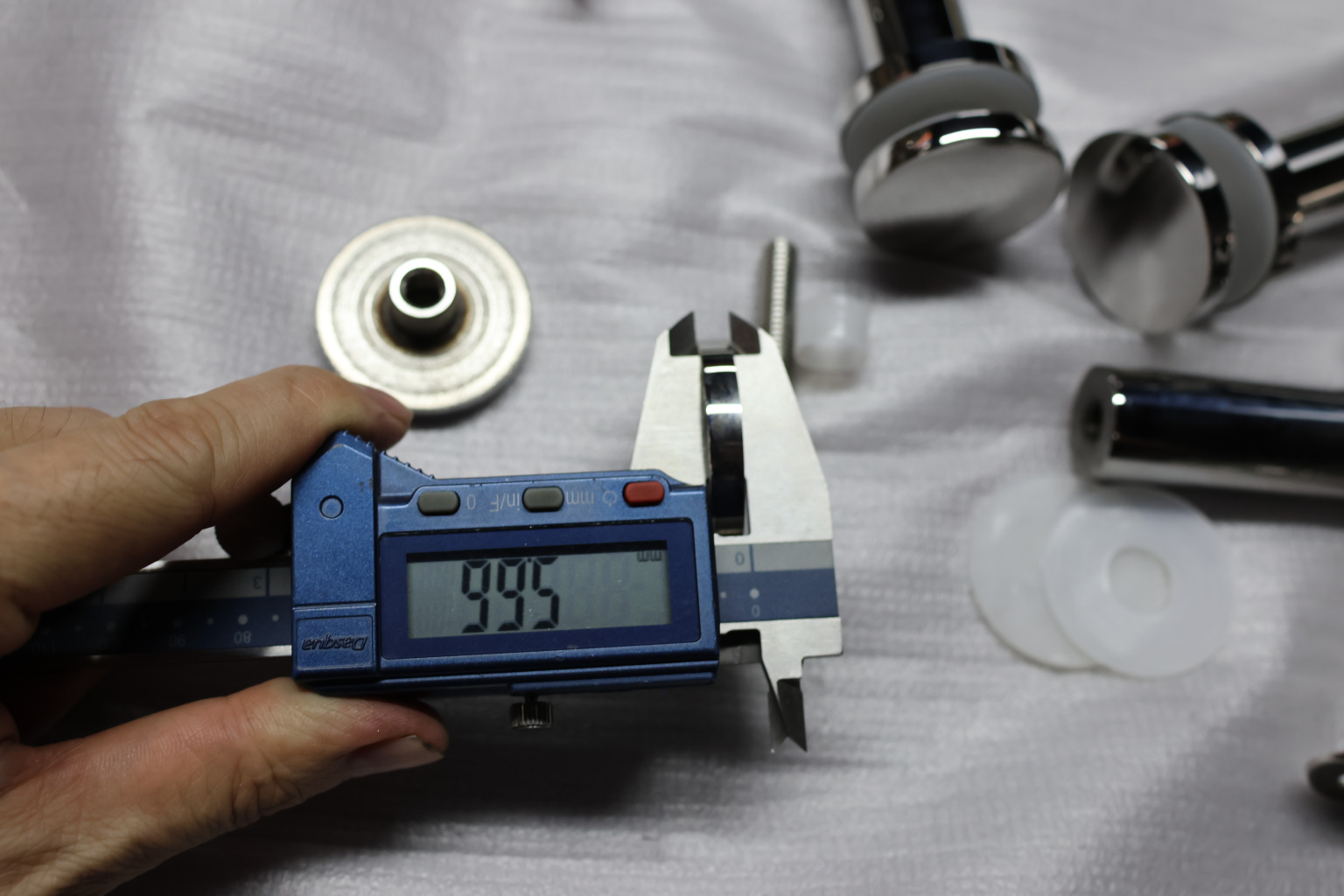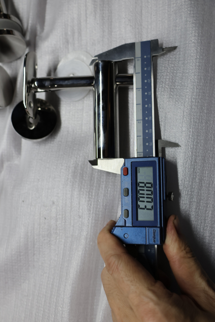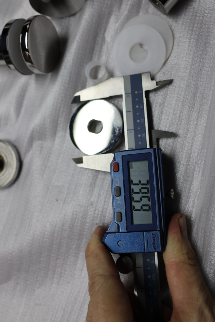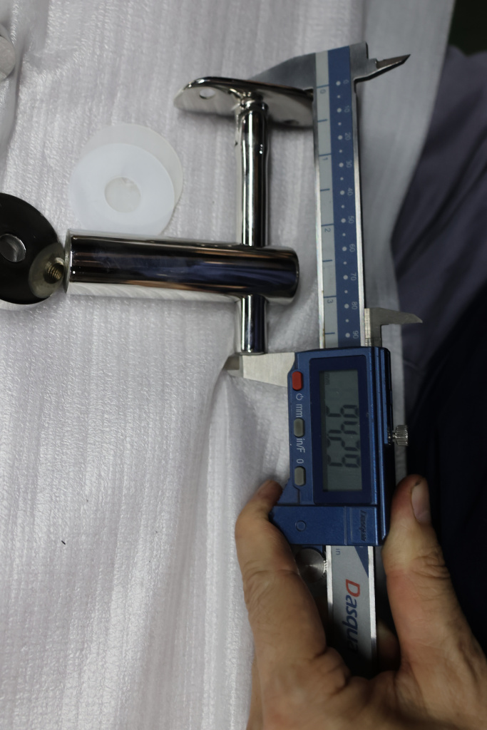 k241-5 выносной держатель поручня на стекло 8-20 мм, регулируемый, с ложементом, полированный, (AISI 304) под отверстие в стекле Ø17-18 мм
