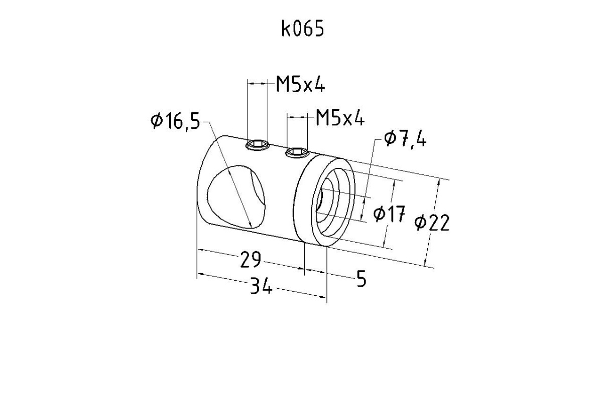 Поворот ригеля Ø16х1.5 мм, с двумя установочными штифтами, шарнирный, (AISI 304) k060-4