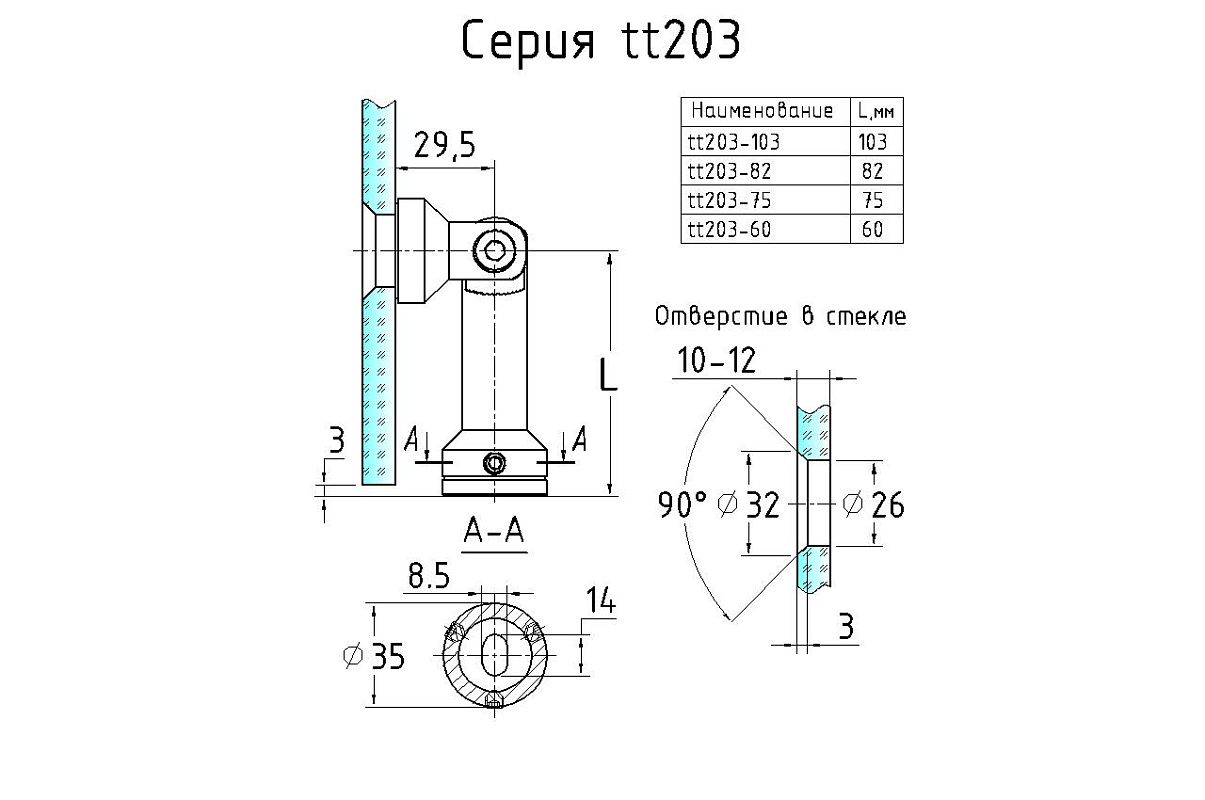 Крепление стекло-стена, штанга 103 мм, под зенковку tt203-103 SSS