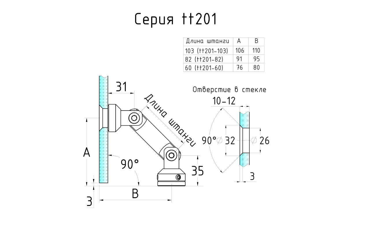 1. t005 Стеклодержатель с зенковкой, шарнирный, для стекла 10-12 мм, AISI 304 шлифованный