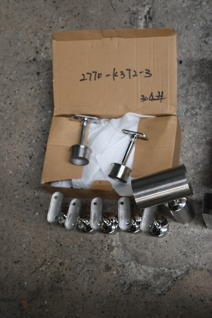 Наконечник палец на стойку из профильной трубы 40х40 мм, с регулируемым ложементом под поручень Ø50.8 мм, полированный, литой, облегченный нержавеющий AISI 304 k239-3