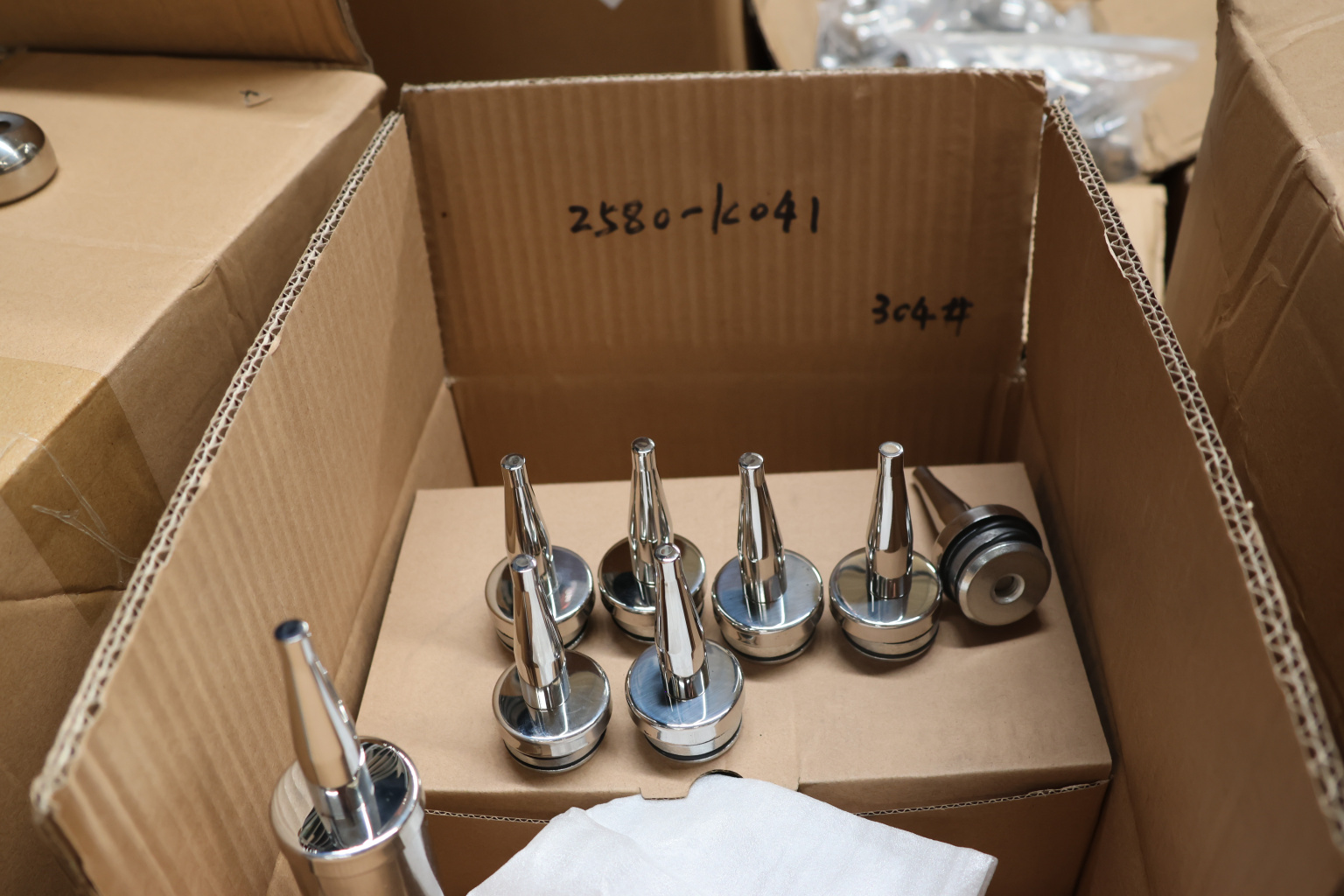 Наконечник палец (солдатик) с системой фиксации из алюминия в стойке диаметром Ø38.1 мм. Деталь полированная, нержавеющая, литая. Марка стали детали - AISI 304.