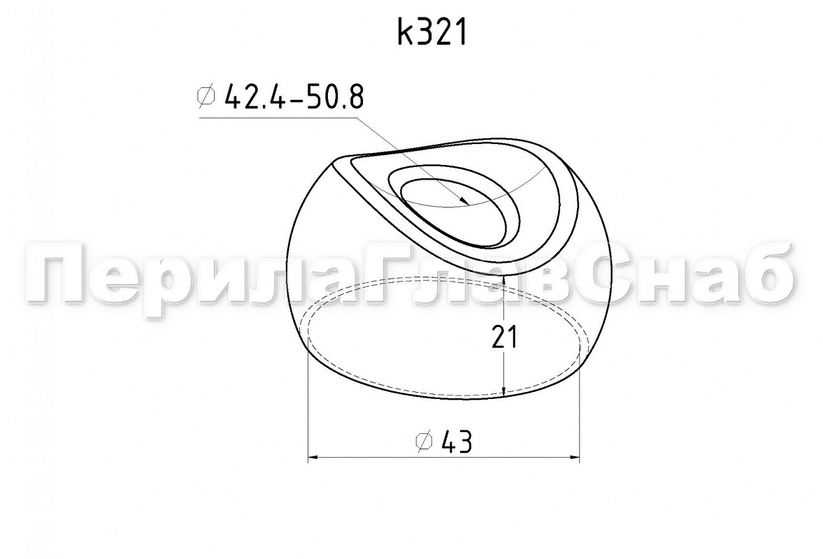 Наконечник штампованный (СПС) прямой 90° на трубу Ø42.4 мм, для поручня Ø50.8 мм, полированный, нержавеющий, AISI 304, 600Grit, k321