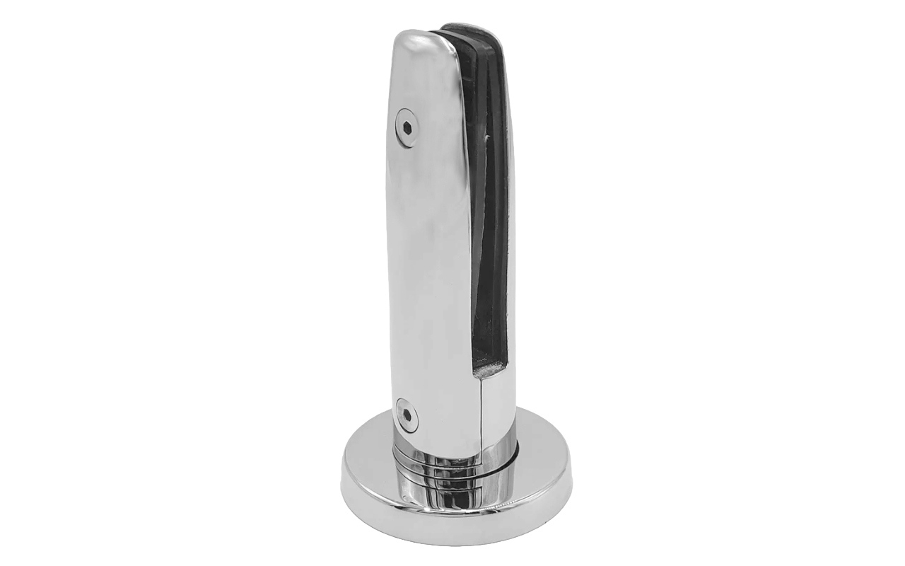 Стеклодержатель литой напольный, круглый, для стекла 12-16 мм, полированный (AISI 304). Так же вам понадобиться для крепежа потайной винт под шестигранник k601-19-120.