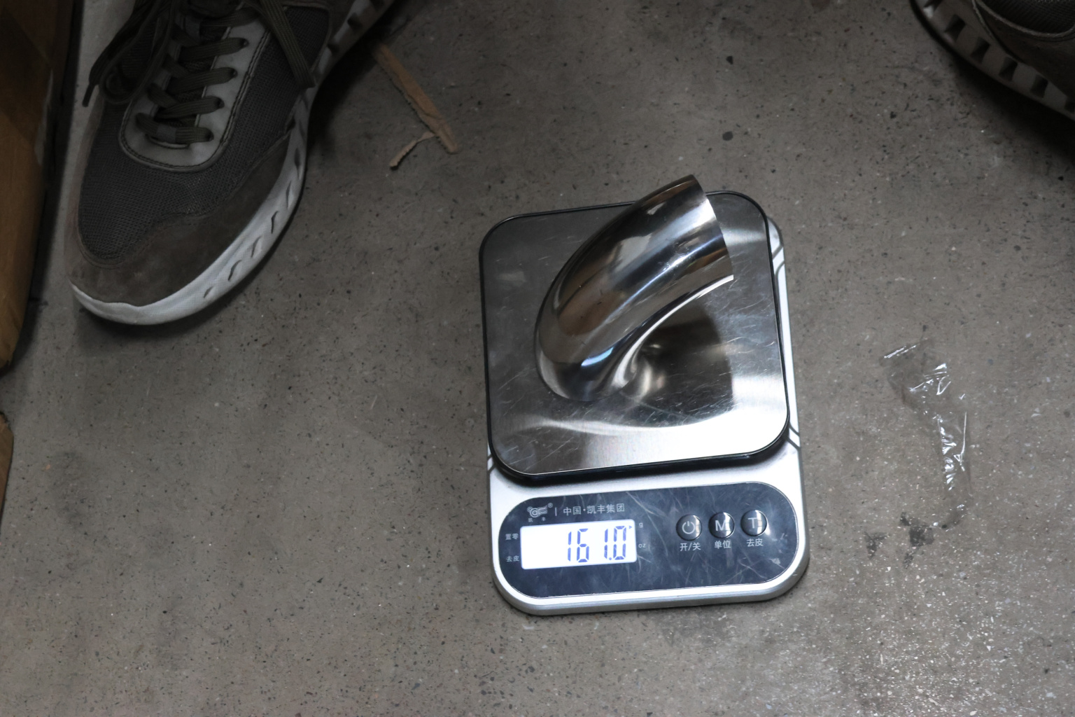 Отвод поручня под сварку для трубы Ø50.8х1.5х145. Деталь полированная, литая. Марка стали - AISI 201 #400