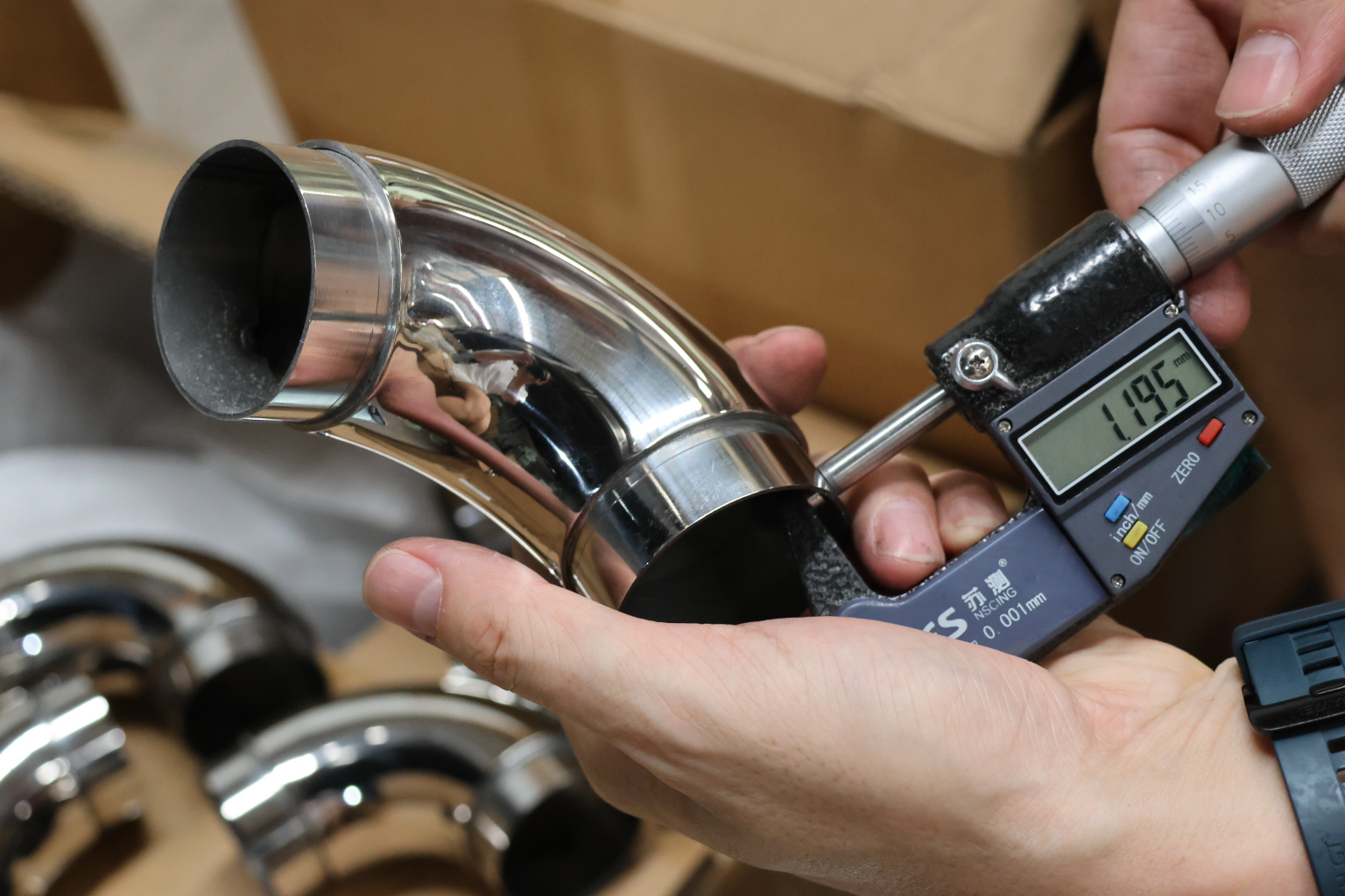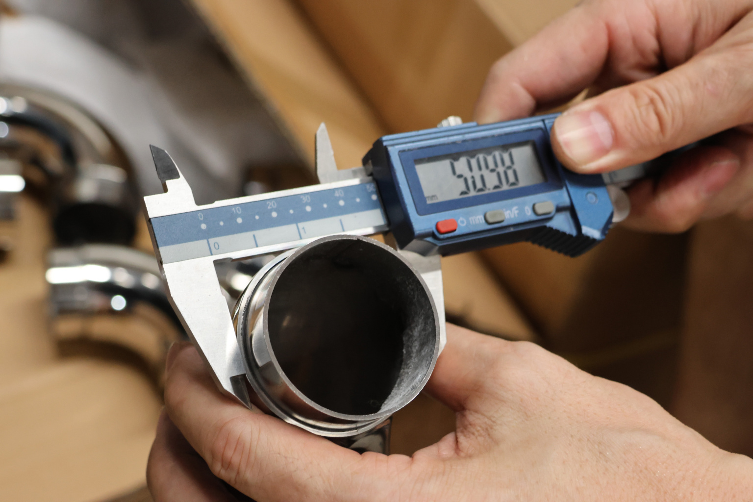 Как правило, в качестве поручня применяется труба из нержавеющей стали толщиной стенки 1.5 мм. Наша модель самосборного отвода сделана из высокопрочной стали со стенкой 1.45 мм с зазором для надежной установки на клей.
