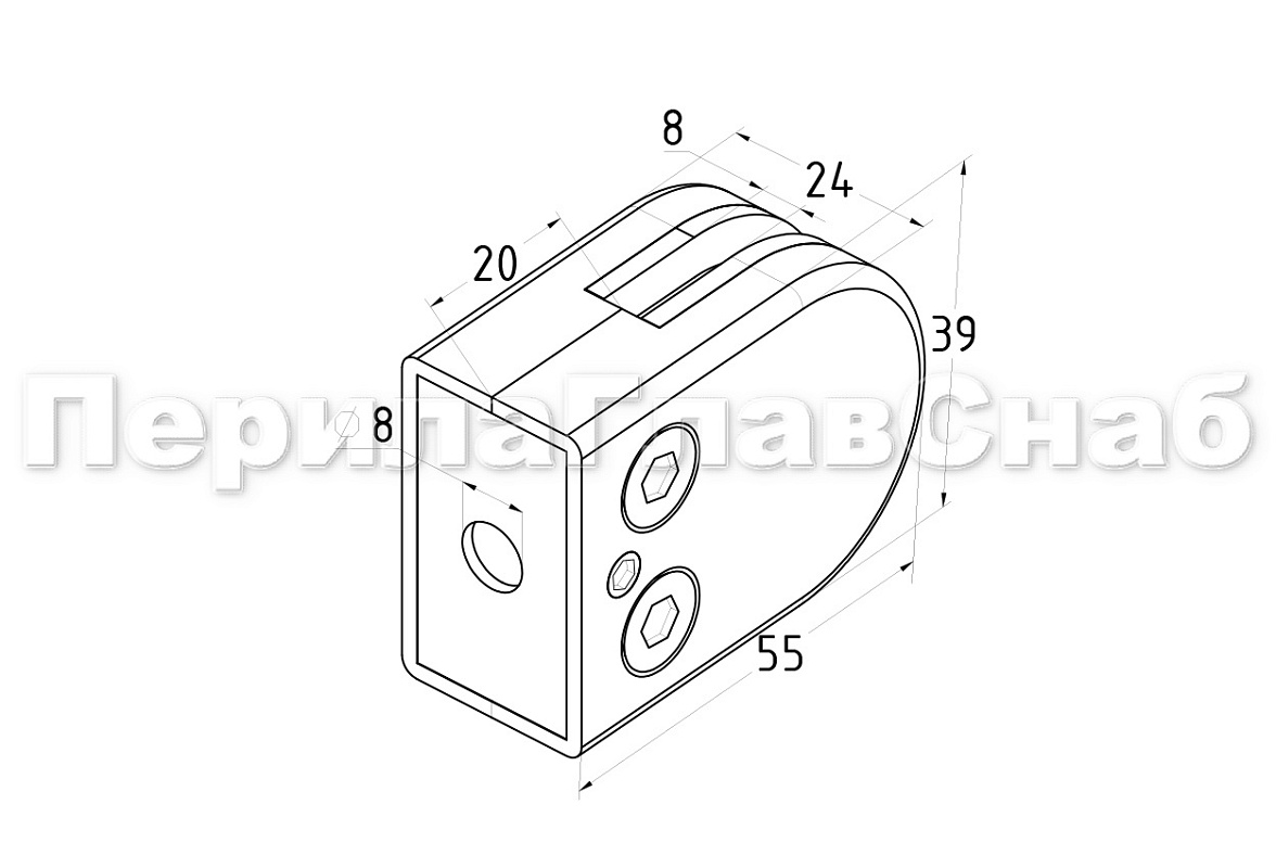 Стеклодержатель штампованный, под стекло 8 мм (4+4 мм), на плоскость 39х24х55 полированный (AISI 304) k539-2
