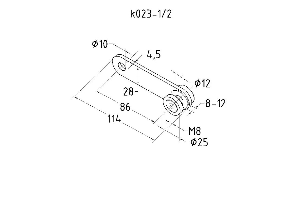 Стеклодержатель пластинчатый 2хМ8 (половинка), по центрам 85х5 мм, полированный, шайбы 5 мм штамп., под стекло 6-12 мм, (AISI 304) k023-1/2