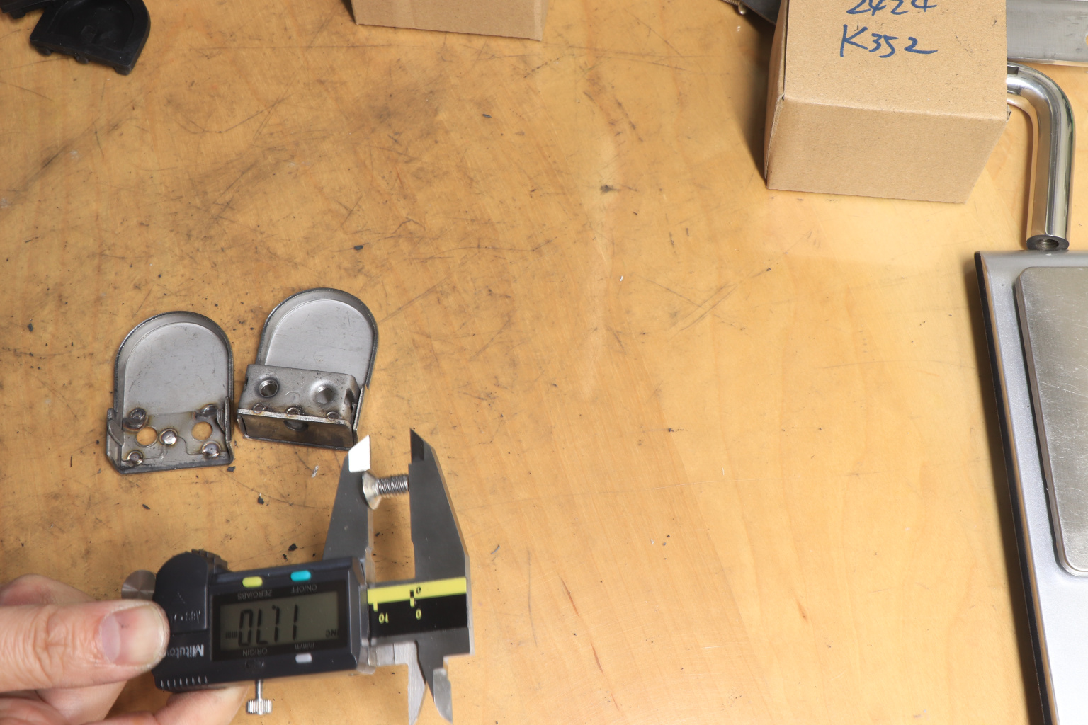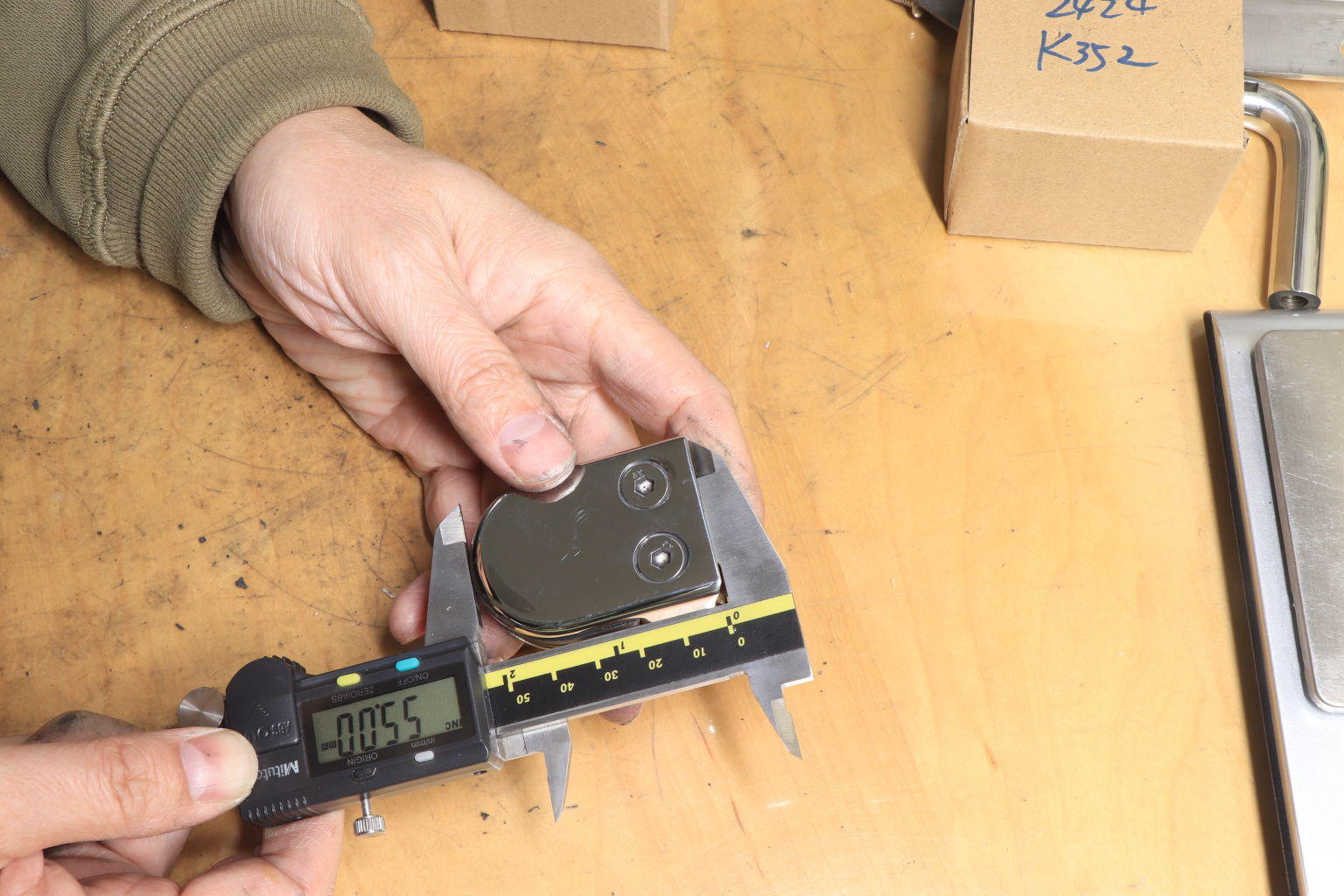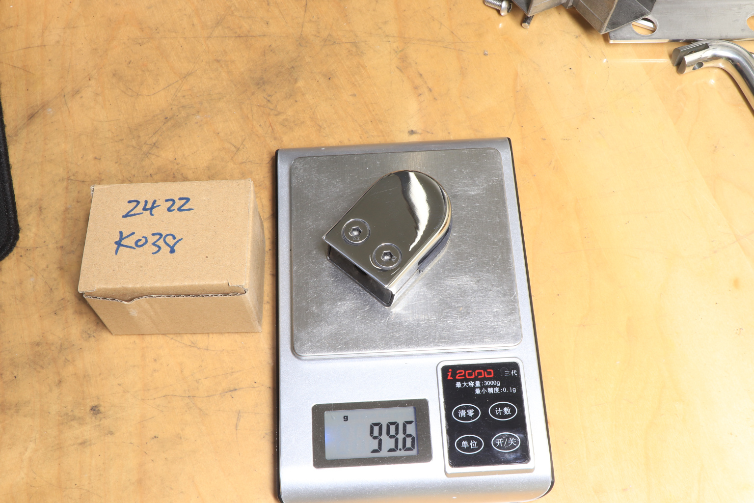 Стеклодержатель штампованный под стекло 8 мм (4+4 мм), под стойку Ø38.1 мм 40х24х55, полированный (AISI 304) k038
