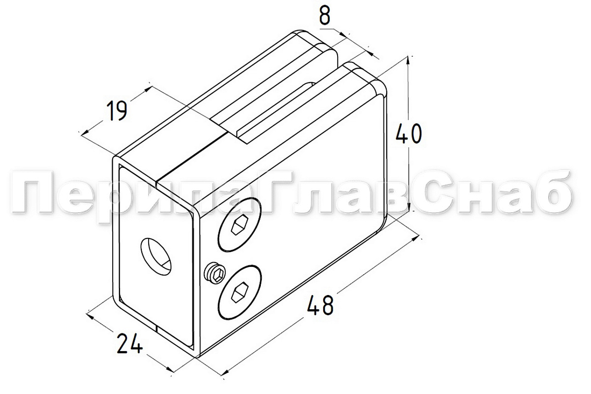 Наконечник 40х40 мм внешний полированный, с ложе под Ø50.8 мм, литой, регулируемый, облегченный, AISI 304, k239-4-NEW