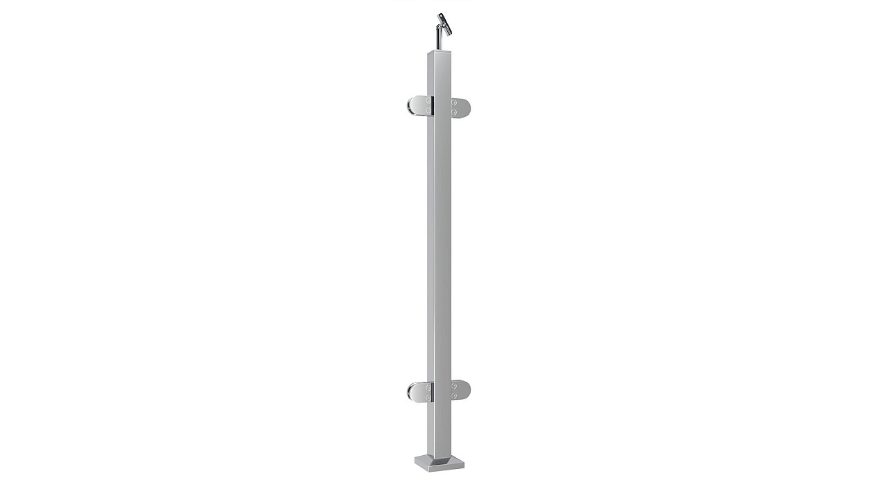 Cтойка квадратная 40х40: 4 литых стеклодержателя, полированная, высота 950 мм (aisi 304)