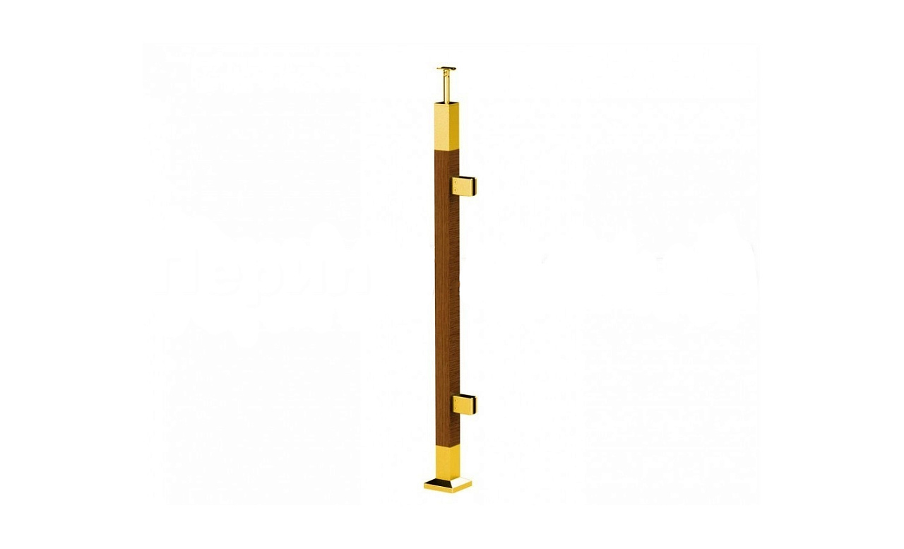 Готовая стойка 40х40х950 мм, деревянная, со вставками из нержавеющей стали 2х100 мм с 4 зажимными стеклодержателями, под золото k740-3-G купить в Воронеже