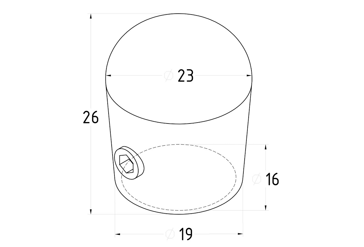 Заглушка для трубы круглая Ø16 мм, наружная, нержавеющая сталь AISI 304, полированная k246-16