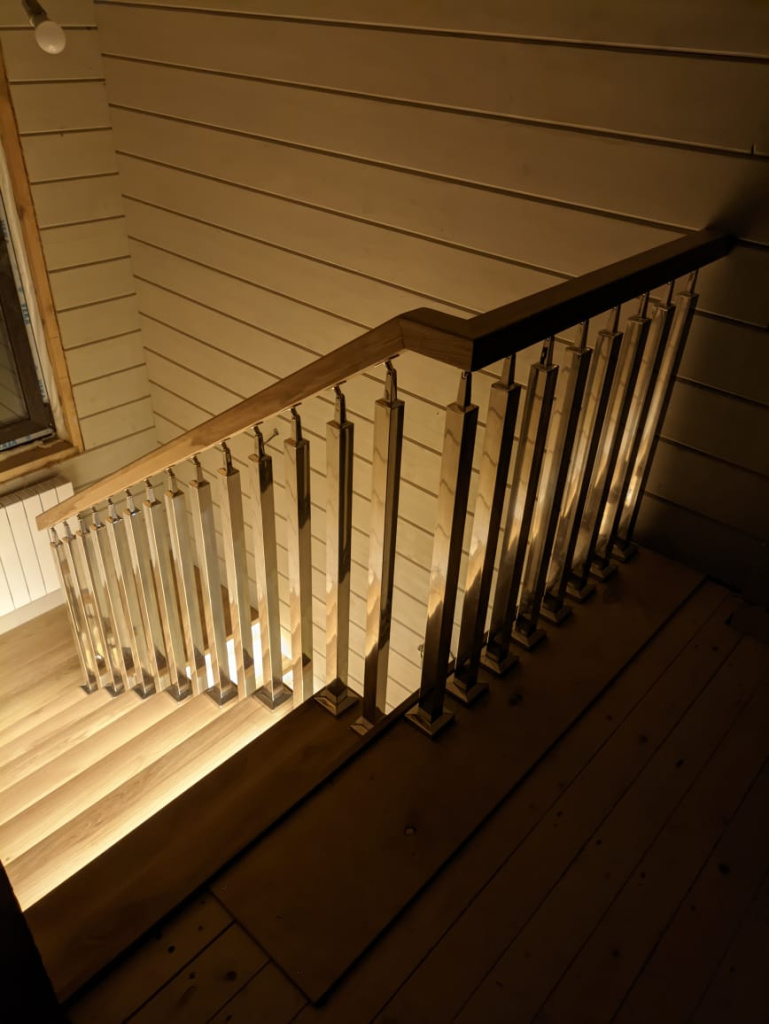 Это позволяет достичь уникального стиля, где прочность и современный дизайн перил сочетаются с естественной красотой дерева.