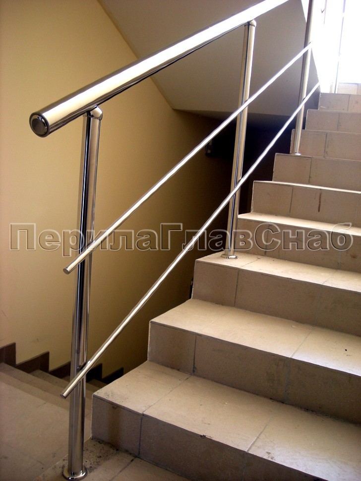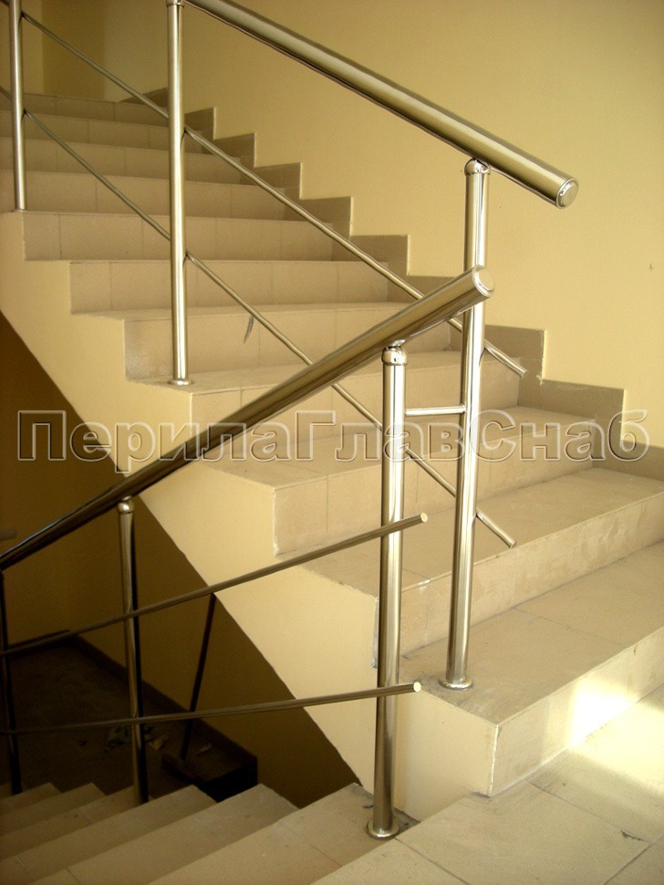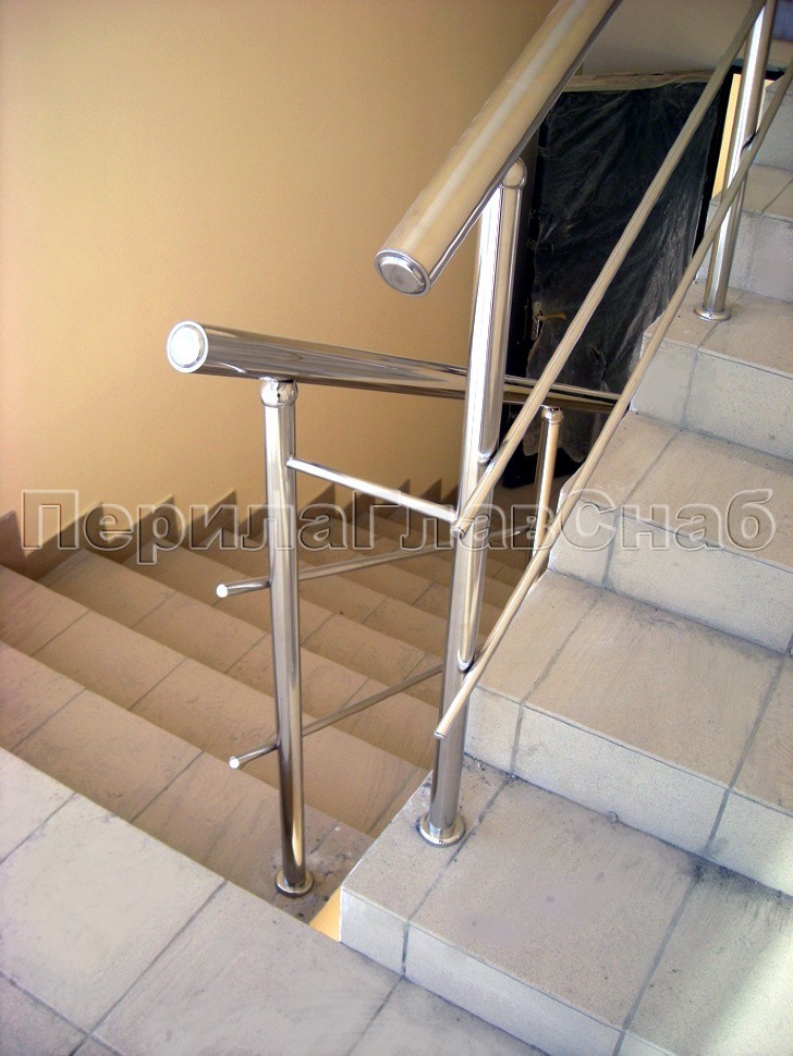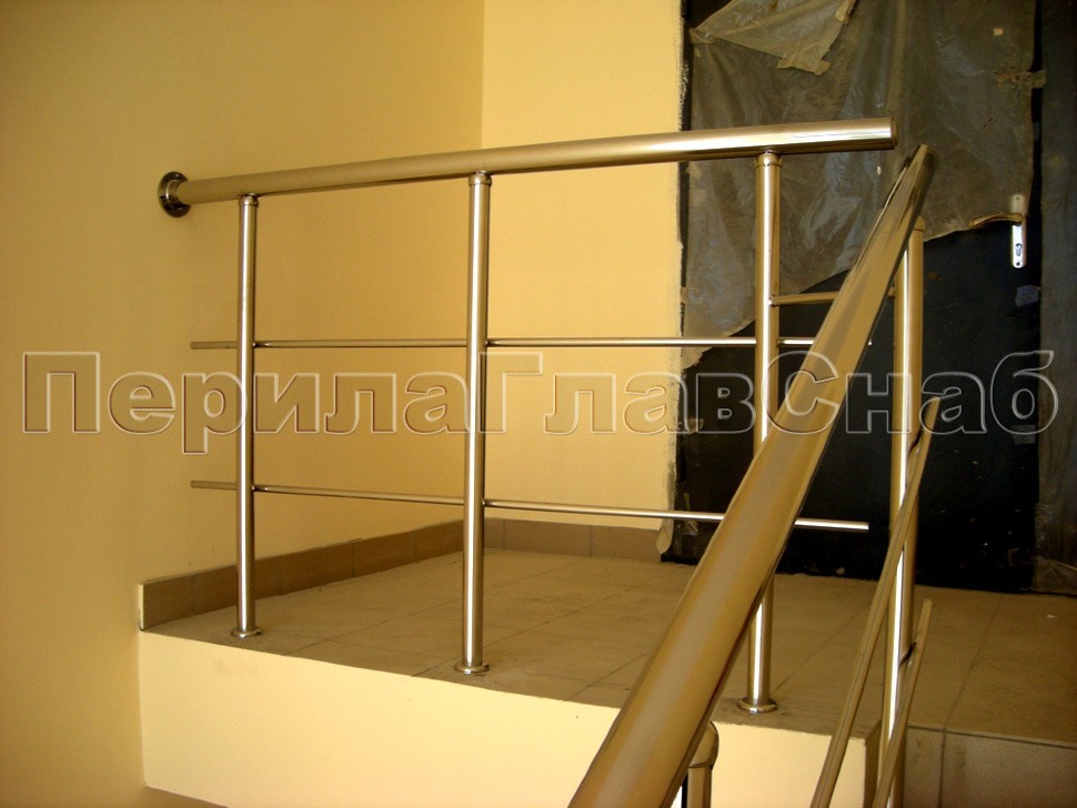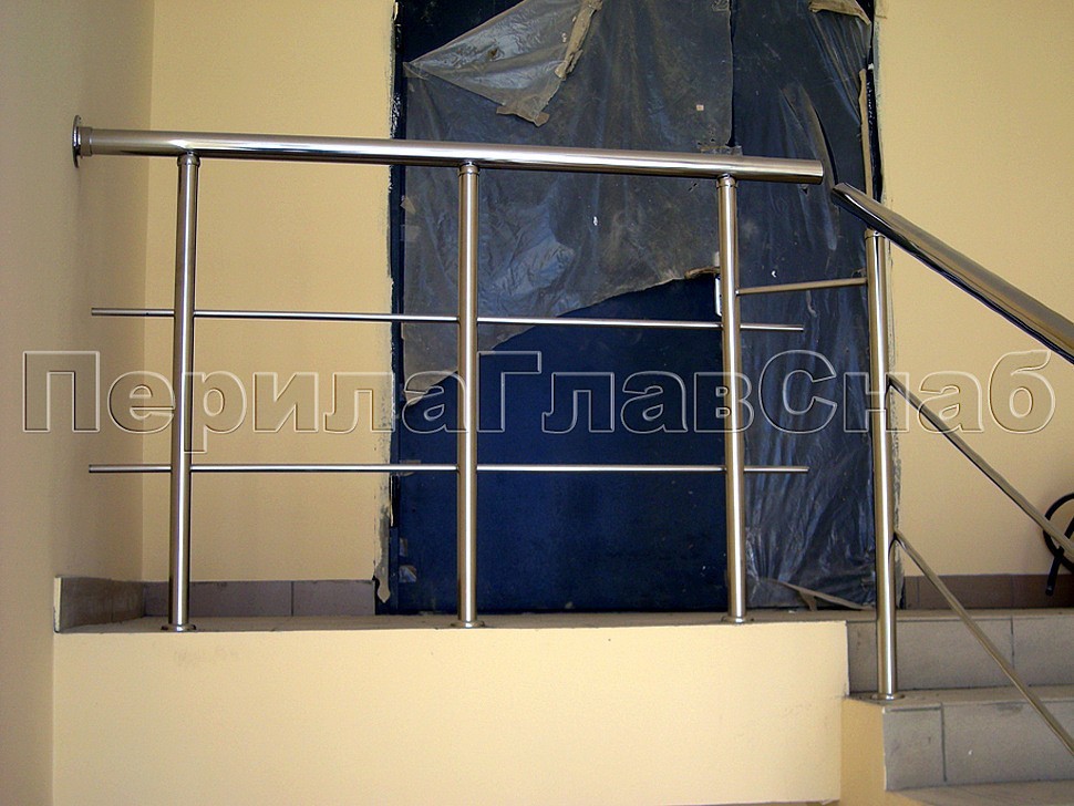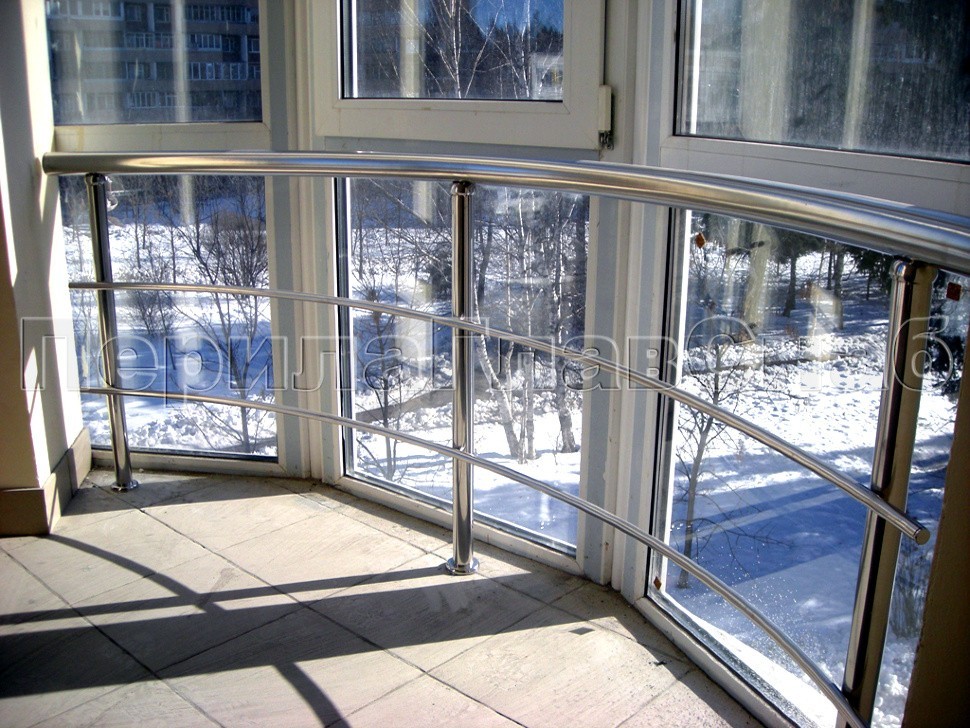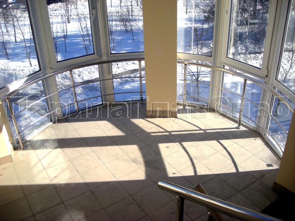 Характерной особенностью данного проекта является радиусная система ограждения окон в сочетании с прямым поручнем ригельных ограждений из нержавеющей стали на лестничных маршах.