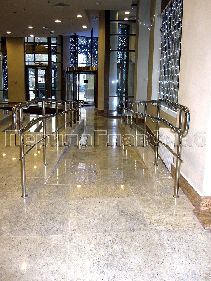 А на входе и выходе из помещений торгового зала мы установили специальные пандусы и ограждения с многоуровневыми поручнями для маломобильной категории граждан, или как было принято называть эти комплексы среди строителей ранее «пандусы для инвалидов».