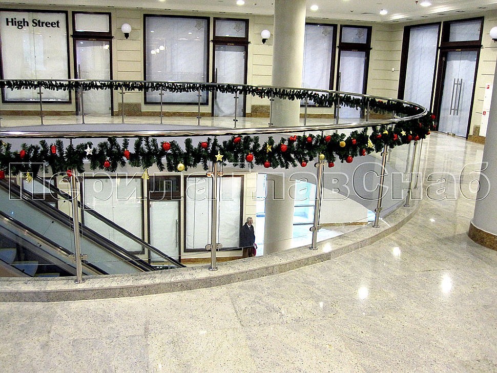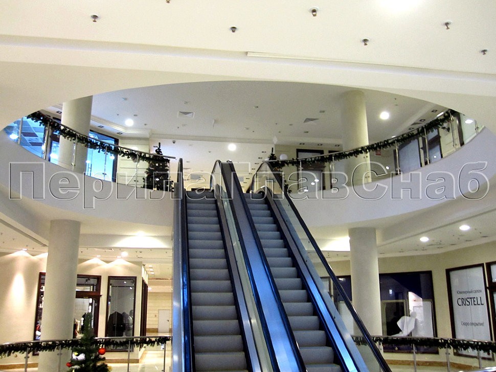 Комплекс ограждения атриума защищал подъемы эскалаторов, образуя гармоничный ансамбль стекла и нержавеющей стали.