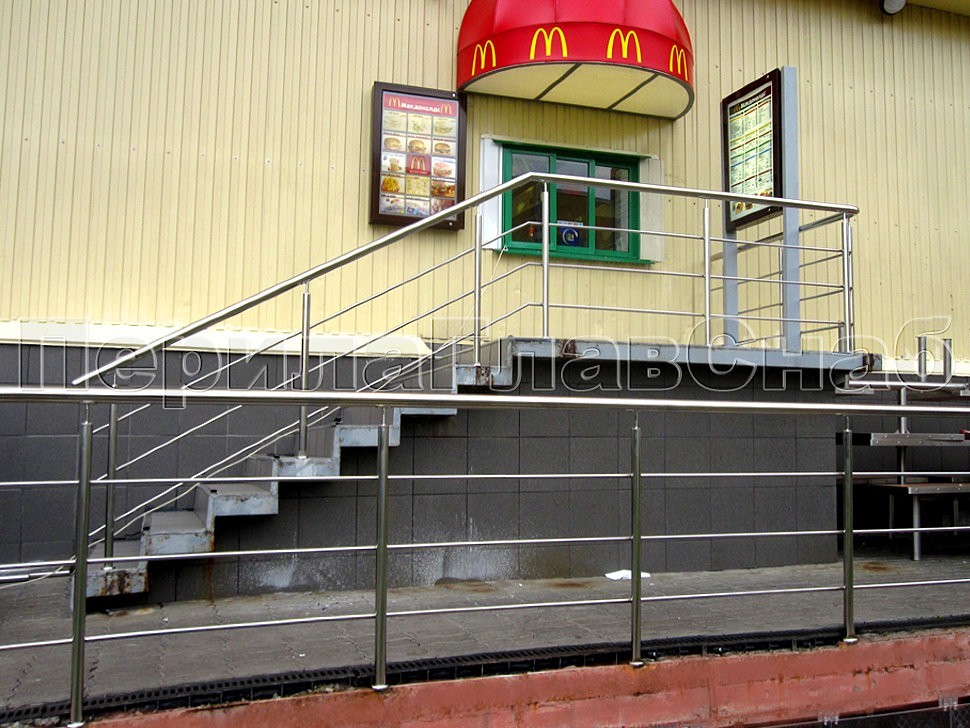 На территории, прилегающей к ресторану быстрого питания McDonald's на ул. Пришвина было установлено ограждение из нержавеющей стали.