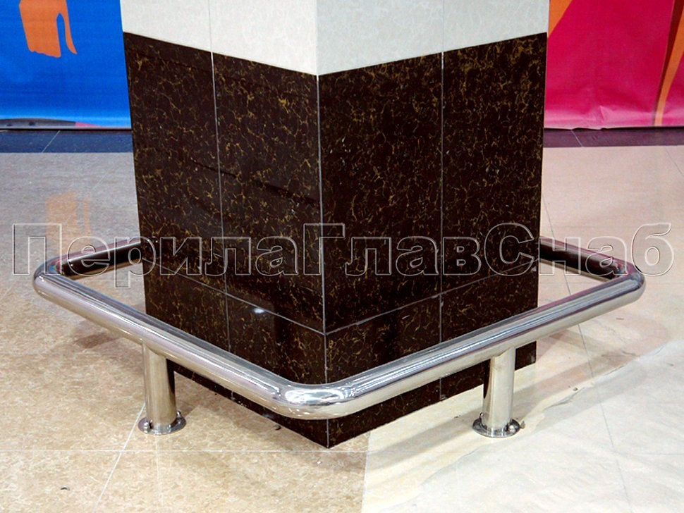 В гипермаркете «Ашан» г. Рязань требовалось разработать и установить комплекс конструкций для обеспечения защиты внутренних колонн и сооружений от постоянных столкновений с товарными тележками посетителей магазина. Для решения данной проблемы заказчика мы применили ряд технологических усовершенствований в архитектурной части проекта и разработали несколько видов колесоотбойников из нержавеющей стали и защитных ограждений колонн, как вдоль стен, так и по всему гипермаркету.