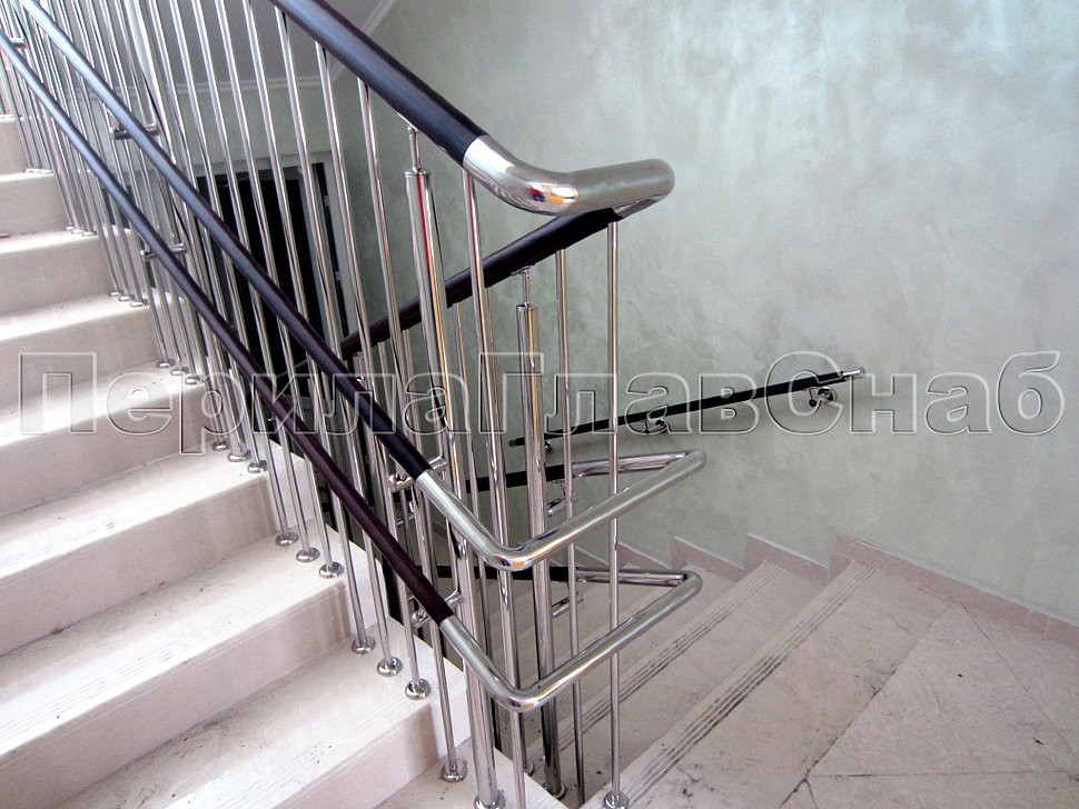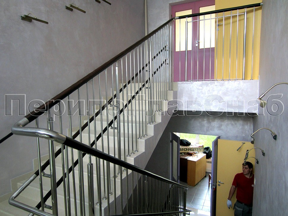 В специализированном дошкольном учреждении «Гармония» было разработано и установлено ограждение лестницы с вертикальном заполнением между стойками и дополнительными поручнями для самых маленьких обитателей детского сада.
