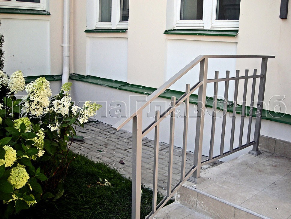 Придерживаясь той же исторической канвы, что была использована в архитектуре здания, разрабатывались и внедрялись дизайнерские решения в оформлении остальных конструкций, — это и козырек над входом и стеклянная защита цокольного и подвального этажей.