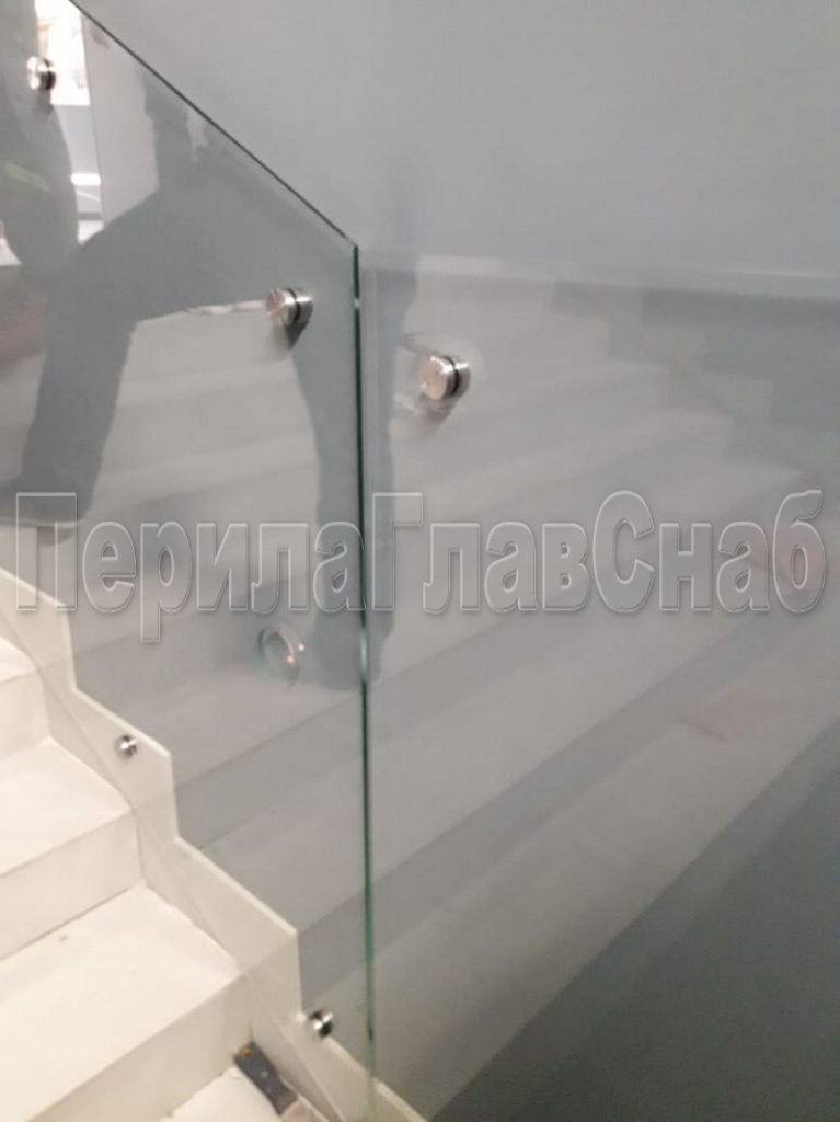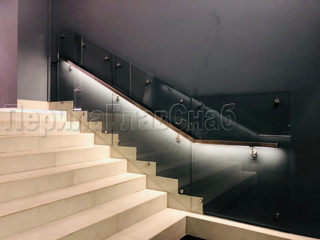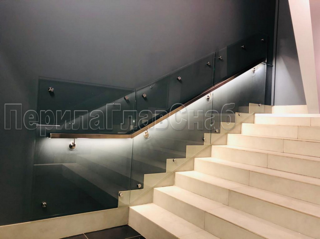 Конструктив:  профильная  труба  40х40 мм с  пазом  и встроенной  ЛЭД подсветкой, пристенные  держатели, стекло