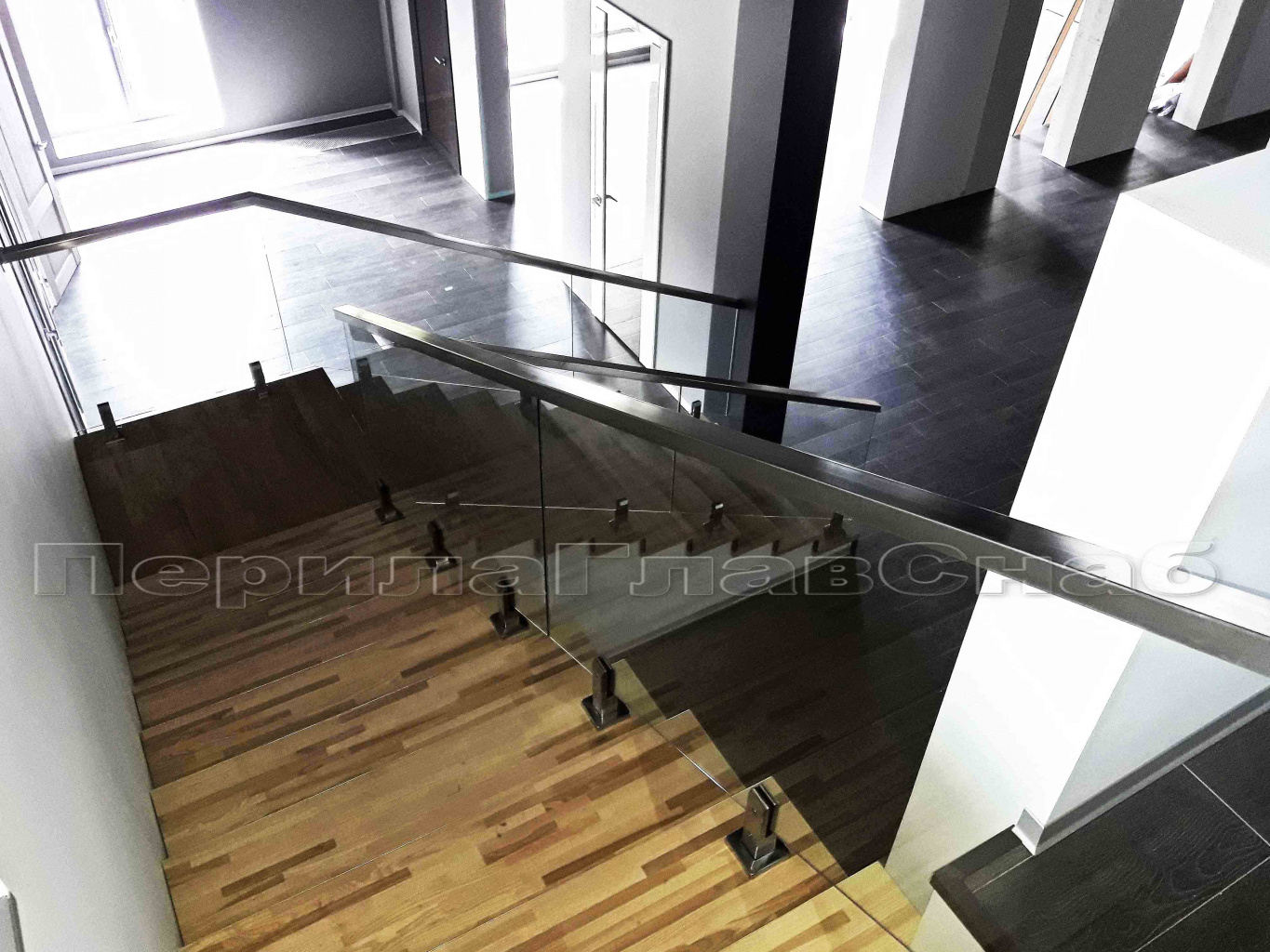 Ограждения лестницы без поручня с зажимными стеклодержателями и стойками
