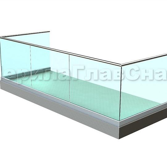 Данный тип ограждений в своей конструкции стоек не содержит. Несущие функции выполняет толстое каленое стекло. Само же несущее стекло крепится к балконной плите на алюминиевый профиль, который способен выдержать очень большие нагрузки, поэтому очень надежный.